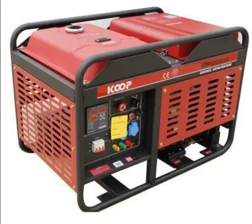 موتور برق دیزلی کوپ مدل KDF12000MXE، دستگاهی با توان بالا و مناسب برای مصارف صنعتی و تجاری است. این موتور برق دارای توان دائم 9 کیلووات و حداکثر توان 10 کیلووات است و ولتاژ خروجی آن 220 ولت با فرکانس 50 هرتز در حالت تک فاز میباشد. موتور آن از نوع تک سیلندر رادیاتوردار با حجم 794 سی سی و سیستم سوخترسانی انژکتوری است که با سوخت گازوئیل کار میکند. سیستم راهاندازی این دستگاه استارتی است و از سیمپیچ مسی در ساخت ژنراتور استفاده شده است. مخزن سوخت 34 لیتری و مخزن روغن 2.3 لیتری، امکان کارکرد پایدار و طولانیمدت را فراهم میکنند. سطح صدای این موتور برق 88 دسیبل است و سرعت مداوم آن 3000 دور در دقیقه میباشد.